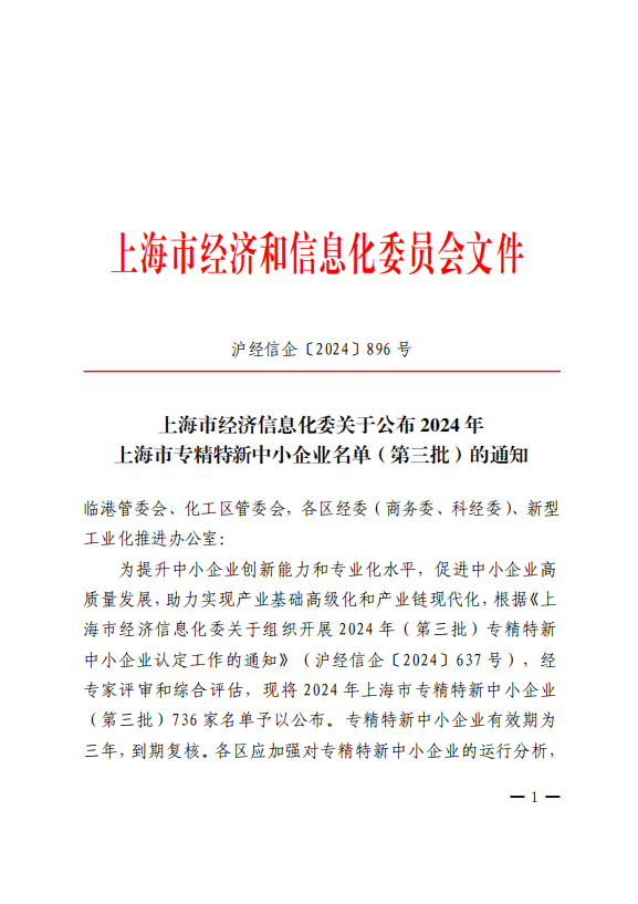 12月19日,上海市經(jīng)濟信息化委公布2024年《上海市專精特新中小企業(yè)名單(第三批)的通知》,上海舜宇恒平科學儀器有限公司成功獲評“2024年上海市專精特新中小企業(yè)”稱號,科技創(chuàng)新能力、企業(yè)核心競爭力再度獲得權(quán)威認可。