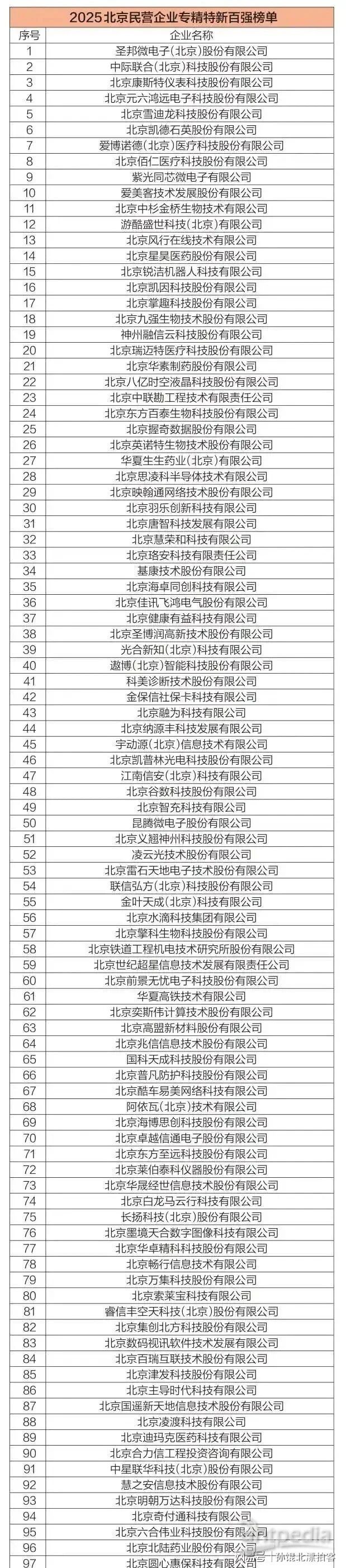2025北京民營企業(yè)專精特新百強榜以企業(yè)年度經(jīng)營情況、研發(fā)創(chuàng)新能力、產(chǎn)業(yè)發(fā)展定位等為核心指標,綜合考量企業(yè)依法合規(guī)經(jīng)營、誠實守信等方面情況,根據(jù)核心指標和輔助指標的量化賦值確定入圍企業(yè)。