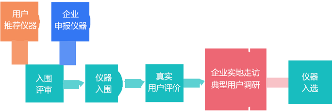 第三屆國產好儀器篩選流程包含以下環節:活動儀器征集——儀器資質審核——用戶入圍評審——入圍儀器的用戶調研——入選儀器公示——入選儀器公布。