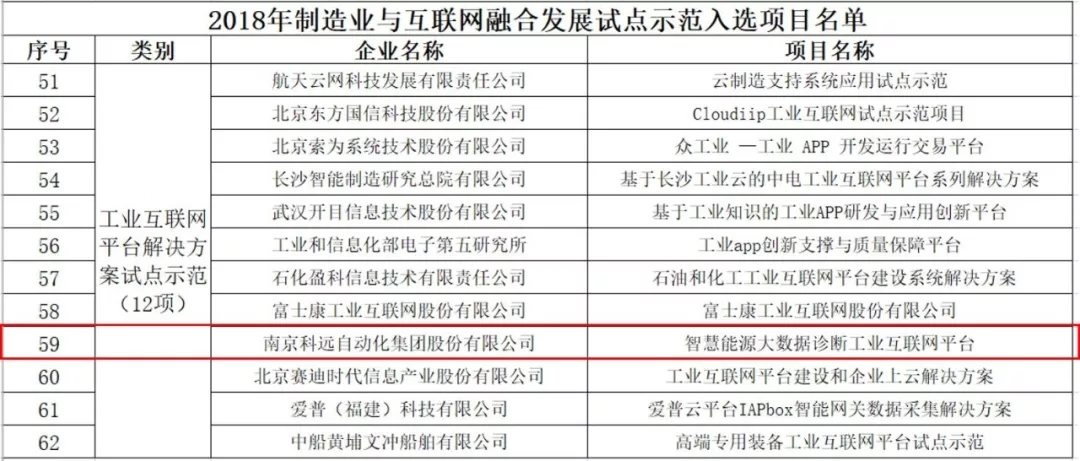 為推動基于互聯(lián)網(wǎng)的制造業(yè)技術、模式、業(yè)態(tài)等創(chuàng)新和應用示范,日前,國家工信部發(fā)布2018年制造業(yè)與互聯(lián)網(wǎng)融合發(fā)展試點示范項目名單,科遠股份智慧能源大數(shù)據(jù)診斷工業(yè)互聯(lián)網(wǎng)平臺作為工業(yè)互聯(lián)網(wǎng)平臺解決方案試點示范成功入選。