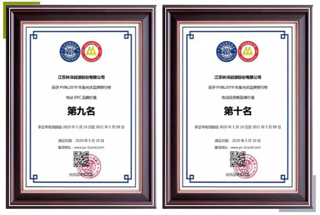 會議期間發布了“PVBL2019年度光伏品牌排行榜”,通過榜樣的力量來引導行業走向健康和諧發展,對行業未來發展起到指引和啟發的作用。江蘇林洋能源股份有限公司(以下簡稱“林洋能源”)憑借出色的產品創新力和卓越的品牌影響力,再次獲得兩大榮譽:電站EPC品牌價值、電站投資商品牌價值,連續多年榮登榜單。