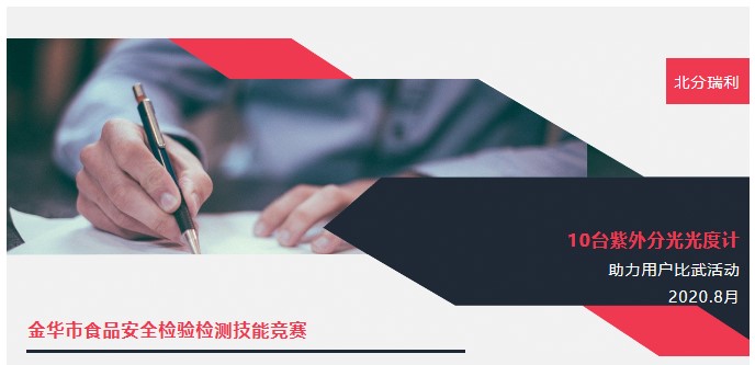 8月18日-19日金華市市場監督管理局舉辦、金華市食品藥品檢驗檢測研究院承辦的2020年度金華市市食品安全檢驗檢測技能競賽比武活動如期開展,北分瑞利10臺紫外分光光度計為此次比武活動的指定實驗儀器。
