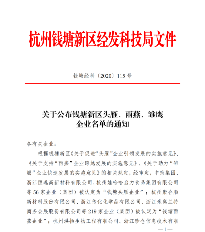 近日,杭州錢塘新區(qū)經(jīng)發(fā)科技局印發(fā)《關(guān)于公布錢塘新區(qū)頭雁、雨燕、雛鷹企業(yè)名單的通知》。根據(jù)通知內(nèi)容,杭州美儀自動化有限公司被認(rèn)定為“錢塘雨燕企業(yè)”。