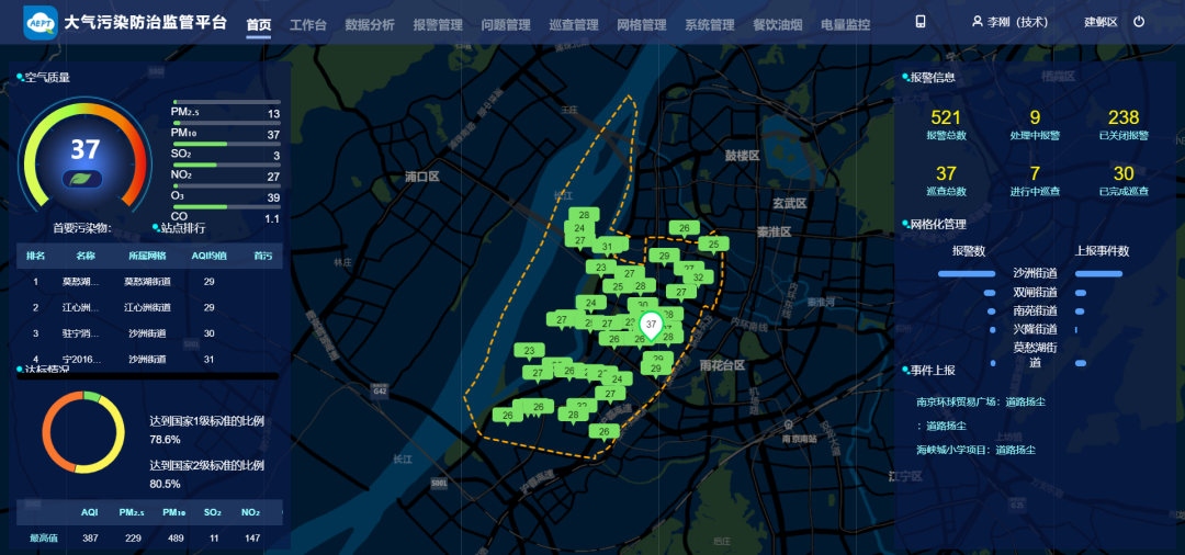 創新監管模式,因地制宜制定本地網格化監測監管聯動體系,補充建鄴區社會網格化治理體系的環保職能,建立“全時監控,異常報警,快速通報,鎖定范圍,督促整治,評估效果”的測管聯動流程,形成閉環,壓實各級責任,提升執行力。