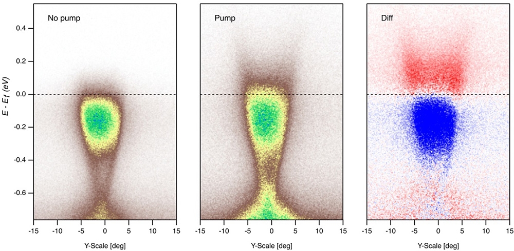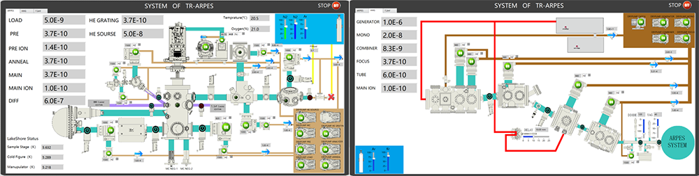 近日,中國(guó)科學(xué)院物理研究所/北京凝聚態(tài)物理國(guó)家研究中心極端條件物理重點(diǎn)實(shí)驗(yàn)室丁洪研究組(EX7組)的博士生陳發(fā)民、潘默君、劉俊德在錢天研究員和運(yùn)晨霞副主任工程師的指導(dǎo)下,研制成功國(guó)內(nèi)首臺(tái)基于高重復(fù)頻率、高通量高次諧波光源的超快角分辨光電子能譜儀(HHG-TRARPES),并通過(guò)了專家的現(xiàn)場(chǎng)測(cè)試(圖1)。該儀器系統(tǒng)配備了六軸低溫樣品臺(tái),DA30半球分析器,極限真空優(yōu)于10-10torr,最低溫度小于6K,其光子能量連續(xù)可調(diào)(20-60eV),重復(fù)頻率為0.4MHz。第18階次光子(21.6eV)的能量分辨率為109meV,時(shí)間分辨率為120fs,樣品位置處的光通量約為1011ph/s,綜合參數(shù)達(dá)到世界同類型設(shè)備的一流水平。此外,全設(shè)備接入自主開發(fā)的控制系統(tǒng),實(shí)現(xiàn)了集成化、智能化、便捷化操作,時(shí)間和角度聯(lián)動(dòng)掃譜,內(nèi)置真空自鎖與保護(hù)功能。目前實(shí)驗(yàn)裝置已經(jīng)進(jìn)入穩(wěn)定運(yùn)行階段,實(shí)現(xiàn)了對(duì)拓?fù)浣^緣體Bi2Se3未占據(jù)態(tài)和電荷密度波材料1T-TiSe2能帶動(dòng)力學(xué)演化過(guò)程的測(cè)量(圖2和圖3)。這一設(shè)備的搭建完成,填補(bǔ)了國(guó)內(nèi)相關(guān)領(lǐng)域的空白,為未來(lái)研究量子材料中電子的超快動(dòng)力學(xué)過(guò)程、未占據(jù)態(tài)以及新型電子態(tài)提供了關(guān)鍵的實(shí)驗(yàn)平臺(tái)。
