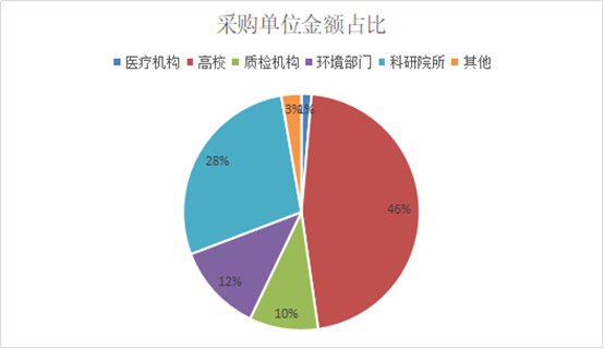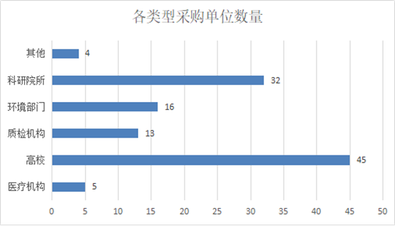 7月共有115家單位采購儀器,其中有高校45所,數量最多,其次是科研院所,數量為32家,采購儀器的高校和科研院所的占了7月采購單位總數量的近70%。