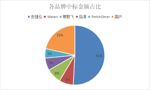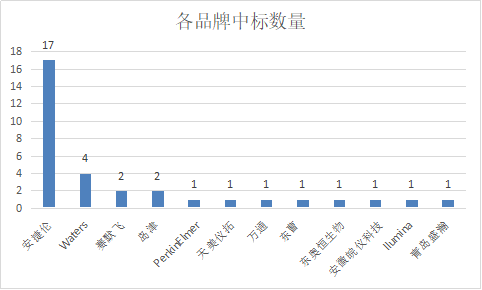 從各品牌中標(biāo)數(shù)量來看,安捷倫以17套中標(biāo)儀器位列第一。位列第二位的Waters,中標(biāo)儀器數(shù)量僅為4套,島津和賽默飛的中標(biāo)儀器數(shù)量均為2套,并列第三位。安捷倫以絕對優(yōu)勢占據(jù)色譜儀器市場。
