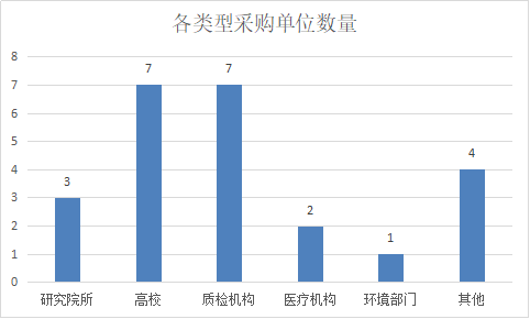 從色譜采購單位來看,7月共有24家單位采購色譜。其中,高校和質(zhì)檢機構(gòu)均是7家。緊隨其后的是研究院所,采購數(shù)量3家。