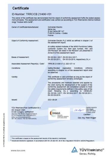 符合鐵路市場(chǎng)嚴(yán)苛標(biāo)準(zhǔn):Modicon M580安全產(chǎn)品已通過(guò)TüV Rheinland評(píng)估,并達(dá)到了SIL4的安全等級(jí);通過(guò)關(guān)于鐵路市場(chǎng)的CENELEC EN50126/EN50128/EN50129標(biāo)準(zhǔn)認(rèn)證。