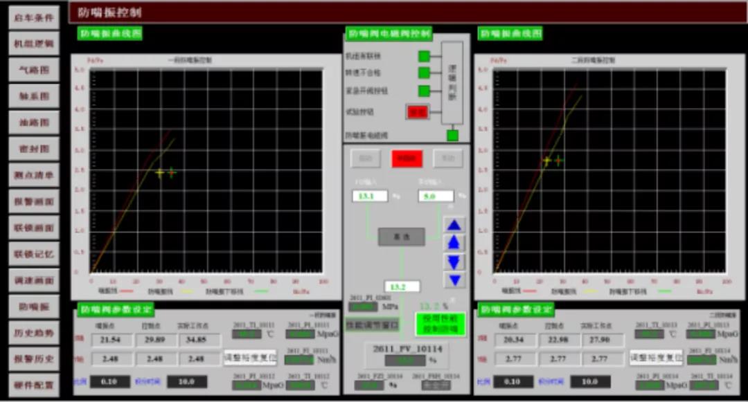 在機(jī)組啟動和停機(jī)過程中,由于機(jī)組流量過低,如果沒有防喘振控制,就會因喘振的發(fā)生對機(jī)組造成損壞。