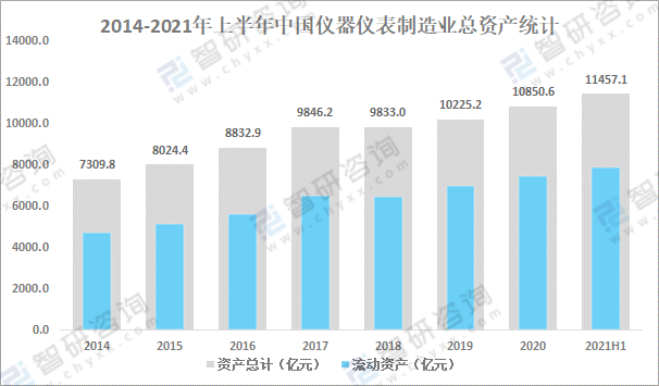 2014-2021年上半年中國儀器儀表制造業總資產統計