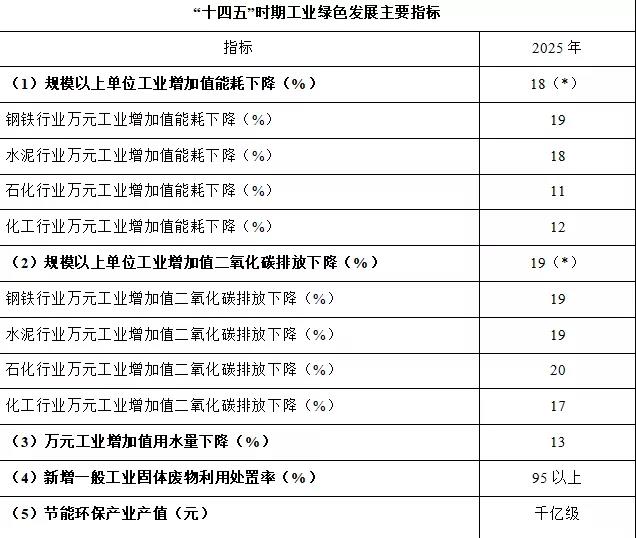 規劃明確主要目標為:到2025年,工業產業結構、生產方式綠色轉型取得顯著成效,綠色低碳工藝技術裝備廣泛應用,能源資源利用效率大幅提高,綠色制造水平全面提升,為工業領域碳達峰奠定堅實基礎。