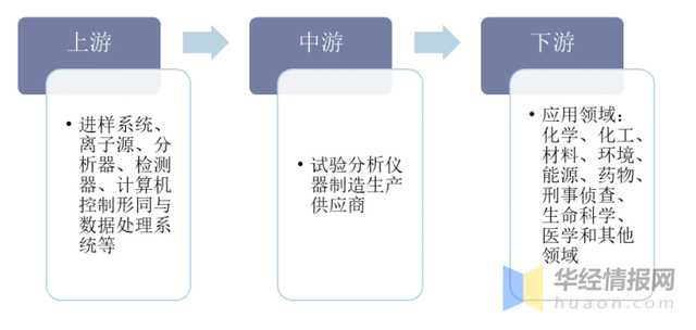 實(shí)驗(yàn)分析儀器根據(jù)分析流程可分為前處理設(shè)備和分析測(cè)試設(shè)備。實(shí)驗(yàn)分析儀器產(chǎn)業(yè)鏈上游主要由進(jìn)樣系統(tǒng)、離子源、分析器、檢測(cè)器等組成;下游應(yīng)用領(lǐng)域廣泛,伴隨物理、化學(xué)、光學(xué)、生命科學(xué)等各學(xué)科領(lǐng)域分析技術(shù)的加速創(chuàng)新,目前已廣泛應(yīng)用于生命科學(xué)、醫(yī)療健康、新型材料研究、新能源、航天和海洋探測(cè)、環(huán)境保護(hù)、食品安全等行業(yè)。