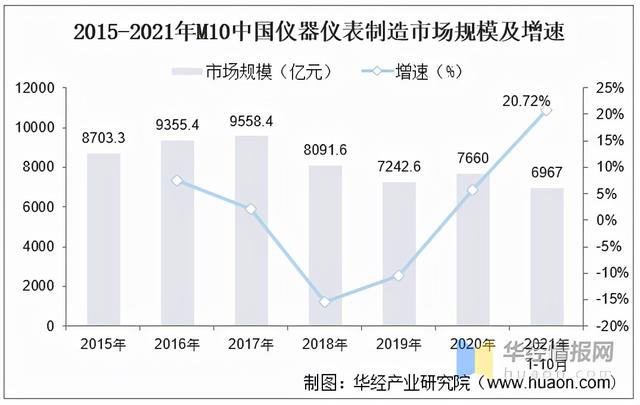 2015-2021年M10中國(guó)儀器儀表制造市場(chǎng)規(guī)模及增速