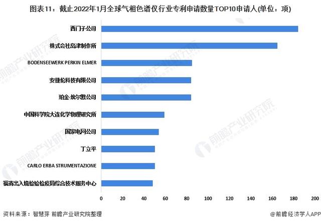 其中,西門子公司氣相色譜儀專利申請數量最多,為184項。株式會社島津制作所排名第二,其氣相色譜儀專利申請數量為165項。