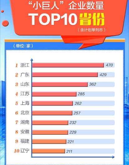 從地域分布上看,目前4762家國家級專精特新“小巨人”中,數量最多的省份前三名依次是浙江、廣東和山東,三省合計約占全國總量的四分之一;從城市維度上看,國家級專精特新“小巨人”數量排名前10名的城市分別是北京、上海、寧波、深圳、天津、重慶、成都、青島、廈門、東莞;而從整體數據看,山東、廣東、浙江的“專精特新”中小企業總量也居于前列。其中,大部分“專精特新”企業來自制造業。