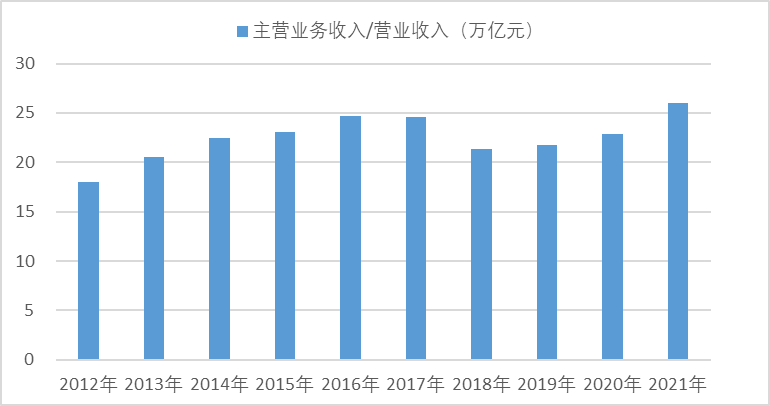 2012-2021年機(jī)械工業(yè)主營(yíng)業(yè)務(wù)收入/營(yíng)業(yè)收入[1]