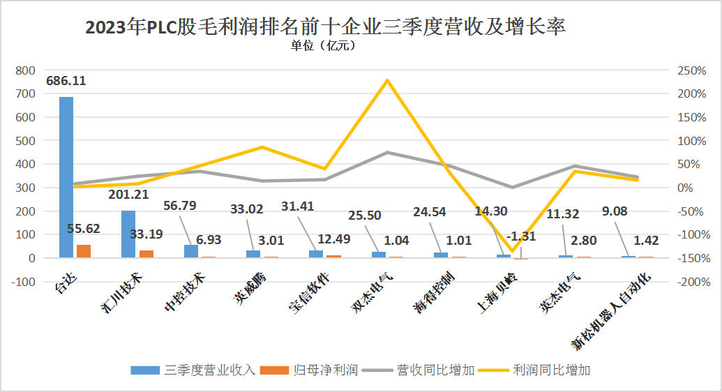 在眾多國產PLC廠商中,匯川技術無疑是最具代表性和影響力的一家。憑借其卓越的技術實力和創新能力,匯川技術成功拿下了變頻器、伺服電機、PLC三大件的國內市場占有率第一。其伺服電機的市占率高達17%(當前實際更高),甚至對西門子、安川等外資品牌也形成了戰略優勢。匯川技術的巔峰市值超過2300億,營業額超過230億,成為國產PLC廠商中的佼佼者。