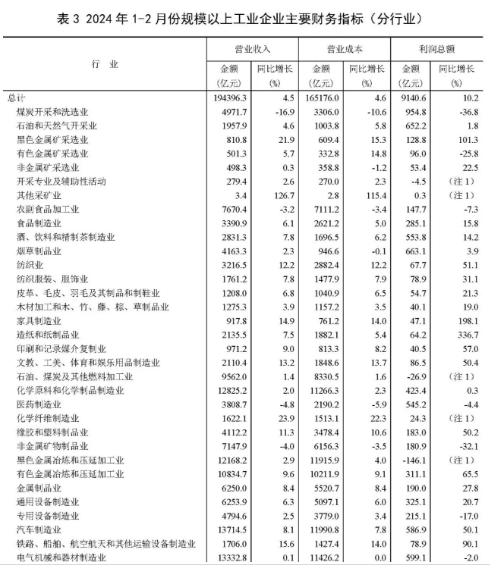 12月份,全國規模以上工業企業實現利潤總額9140.6億元,同比增長10.2%