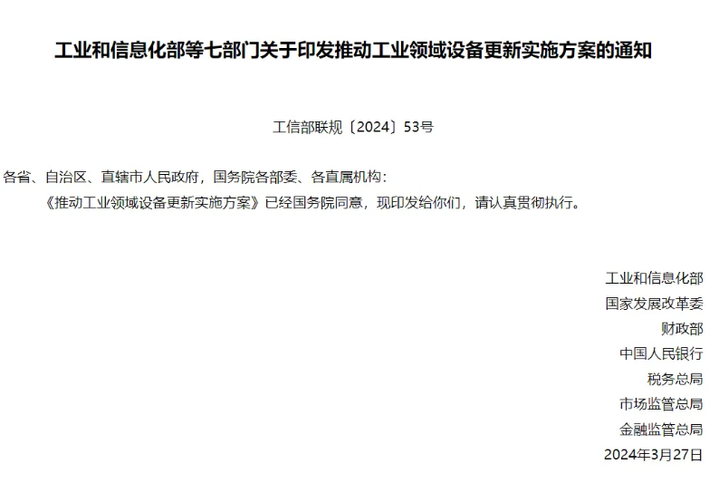 推動工業領域設備更新實施方案
