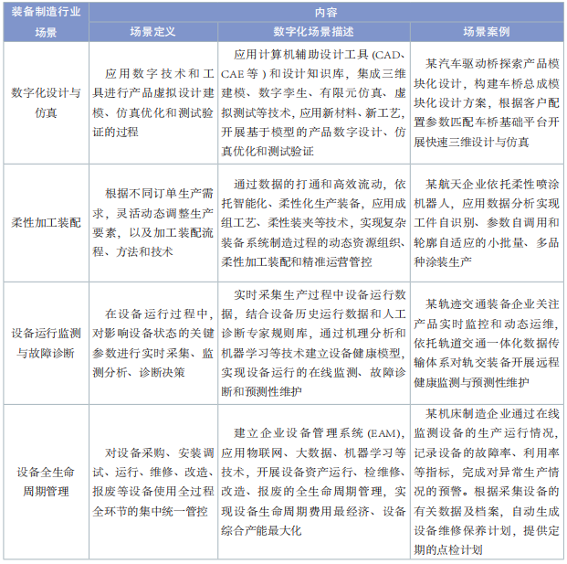 表2 裝備制造行業數字化轉型典型場景內容