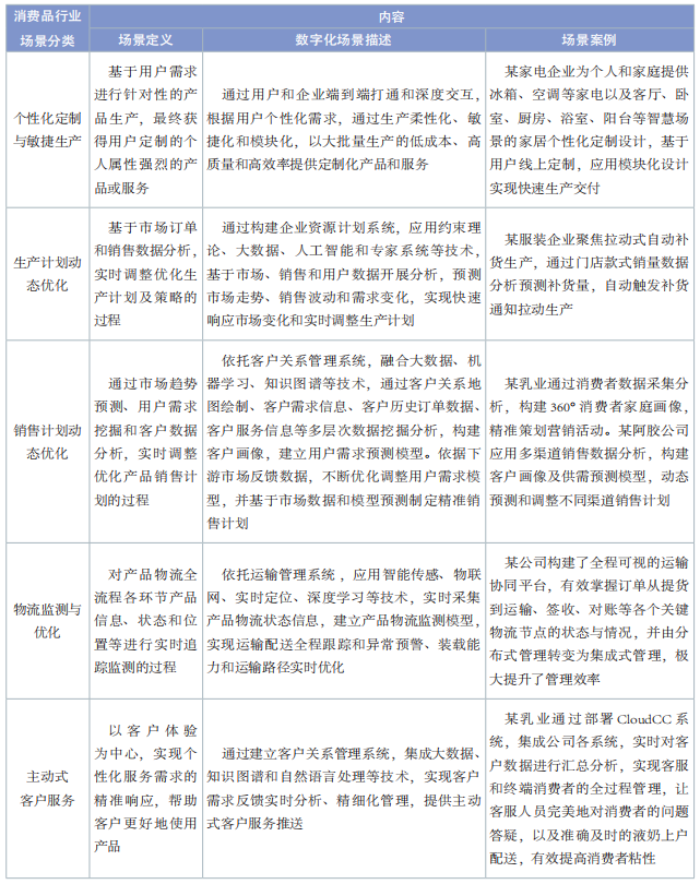 表 4 消費品行業數字化轉型典型場景內容