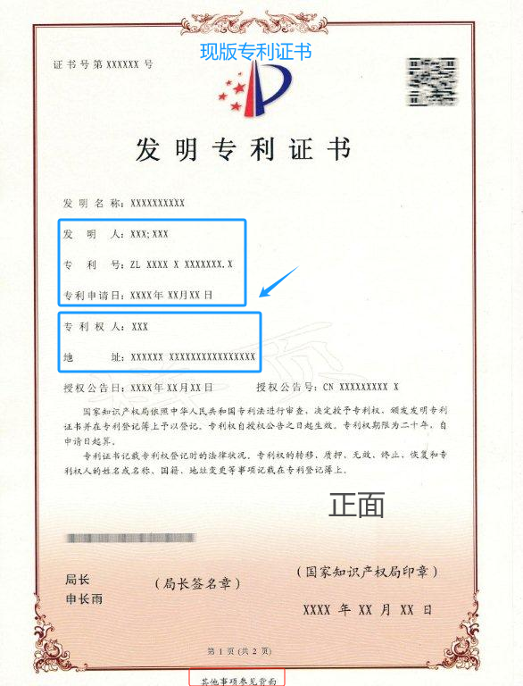 (新版發(fā)明專利證書和現(xiàn)版發(fā)明專利證書)
