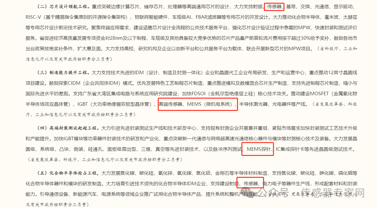 2024年1月,廣東省印發(fā)《廣東省培育半導(dǎo)體及集成電路戰(zhàn)略性新興產(chǎn)業(yè)集群行動(dòng)計(jì)劃(2023-2025年)》,提出“到2025年,半導(dǎo)體及集成電路產(chǎn)業(yè)年主營(yíng)業(yè)務(wù)收入突破4000億元,年均增長(zhǎng)超過22%。”其中,MEMS、傳感器是《行動(dòng)計(jì)劃》中的關(guān)鍵項(xiàng)目。