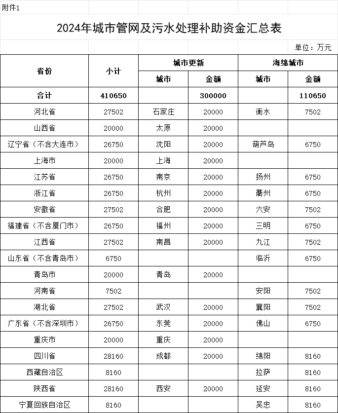 1.2024年城市管網(wǎng)及污水處理補(bǔ)助資金匯總表