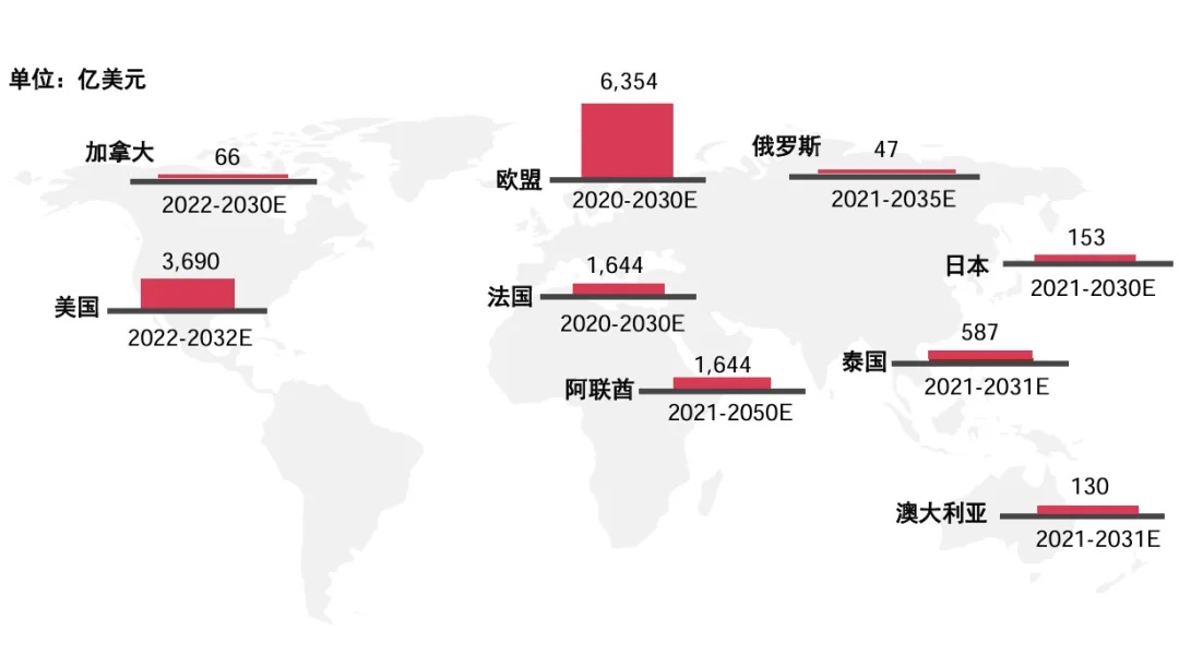 海外主要國(guó)家新能源投資規(guī)模對(duì)比