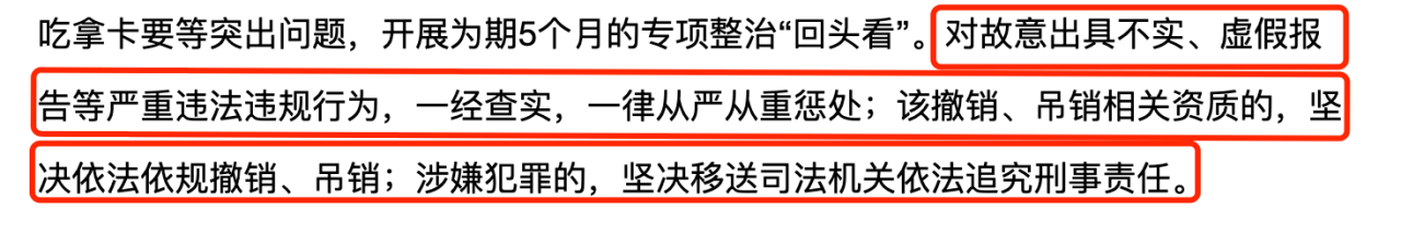 該行動方案要求,各地各部門在前期已開展整治工作的基礎(chǔ)上,結(jié)合職責分工,聚焦食品、特種設(shè)備、交通、建筑、環(huán)境五大領(lǐng)域的檢驗檢測弄虛作假、違規(guī)經(jīng)營、吃拿卡要等突出問題,開展為期5個月的專項整治“回頭看”。