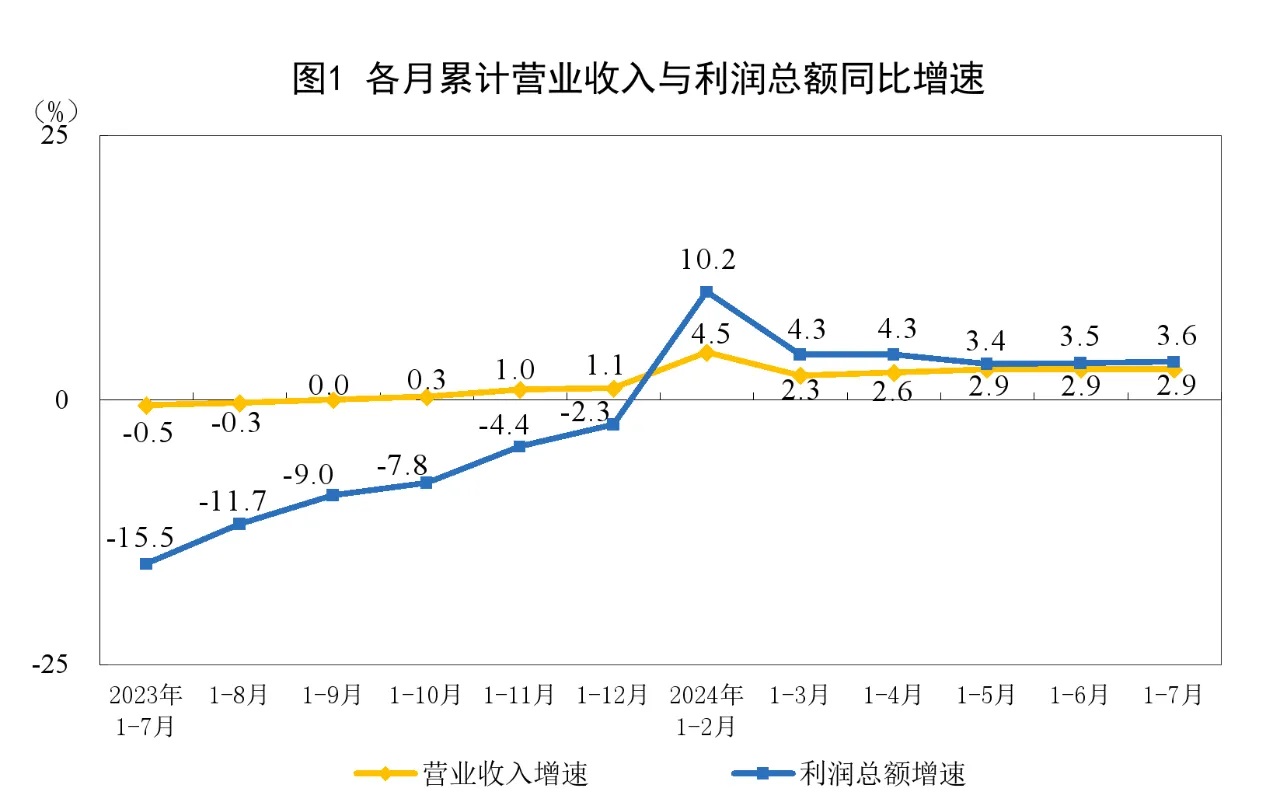 1—7月份,全國規(guī)模以上工業(yè)企業(yè)實現(xiàn)利潤總額40991.7億元,同比增長3.6%(按可比口徑計算,詳見附注二)。