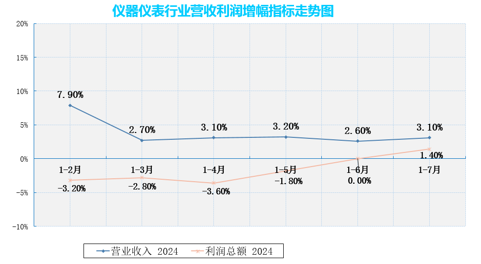 國家統(tǒng)計局發(fā)布最新數據,1—7月份,儀器儀表制造業(yè)營業(yè)收入5527.3億元,同比增長3.1%,實現(xiàn)利潤總額533.3億元,同比增長1.4%(1-6月利潤總額同比增幅為0%),整體而言,儀器儀表制造業(yè)企業(yè)利潤有所改善。
