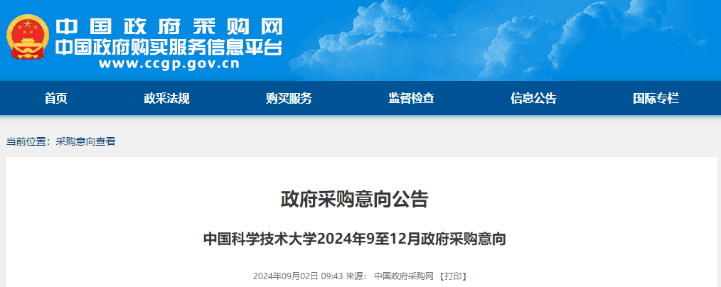 中國科學(xué)技術(shù)大學(xué)2024年9至12月政府采購意向