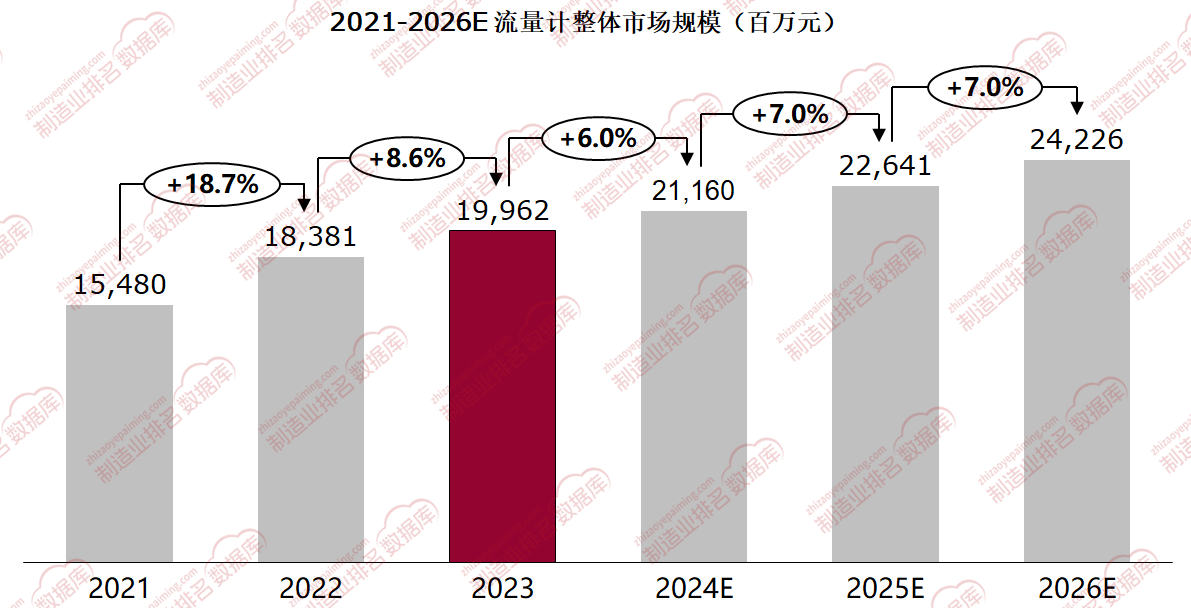 中國流量計市場在2023年的市場規(guī)模為199.62億元人民幣,顯示出中國市場的快速增長和潛力。這種增長受到多種因素的影響,包括能源需求的增長、環(huán)保意識的增強(qiáng)、技術(shù)創(chuàng)新的推動以及自動化、智能化趨勢的發(fā)展。這些因素共同作用,推動了流量計市場的需求增長。
