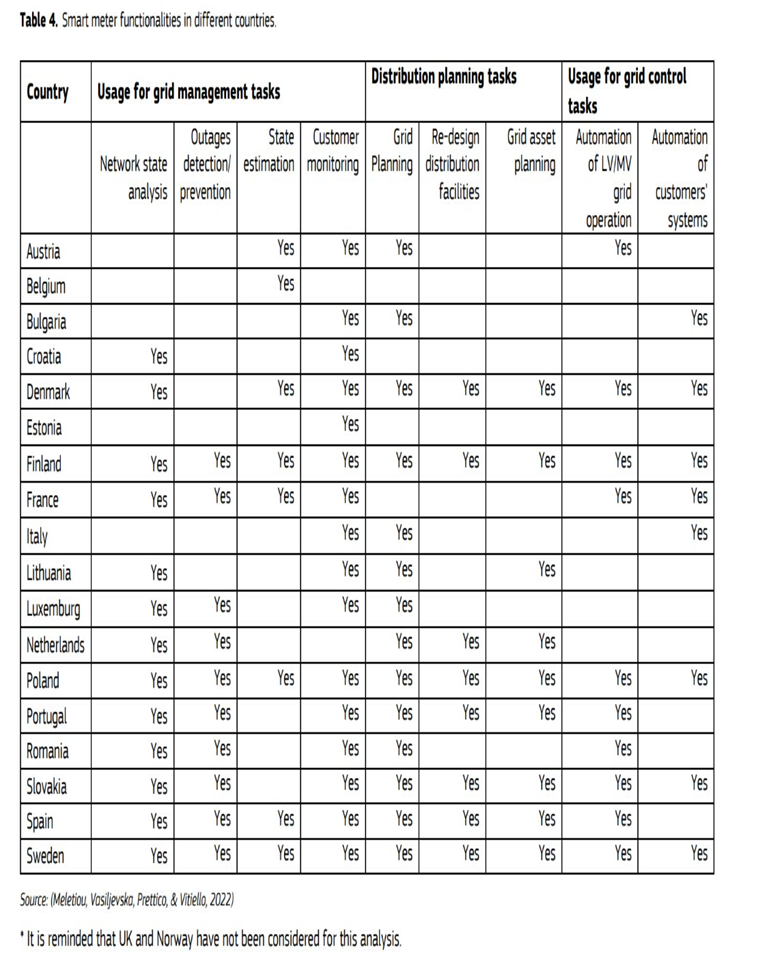 - 客戶監(jiān)控:為客戶創(chuàng)造消費(fèi)行為(38 個 DSO)。總體而言,56 個 DSO 中有 41 個使用智能電表執(zhí)行電網(wǎng)管理任務(wù)。56 個 DSO 中有 18 個用于電網(wǎng)控制任務(wù)的儀表。電網(wǎng)控制任務(wù)可以帶來好處,例如低壓/中壓電網(wǎng)的自動化和/或客戶系統(tǒng)的自動化,包括促進(jìn)客戶參與需求響應(yīng)計劃。56 個 DSO 中有 29 個總體上使用配電計劃任務(wù)的儀表。通過智能電表,可以更好地規(guī)劃配電網(wǎng),同時更好地做出投資決策。