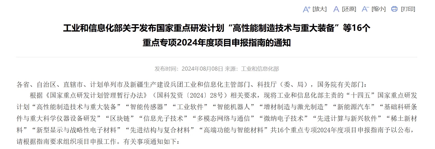 近期,工信部國家重點研發(fā)計劃2024年度項目申報指南發(fā)布,共涵蓋“高端功能與智能材料、先進結(jié)構(gòu)與復合材料、新型顯示與戰(zhàn)略性電子材料、高性能制造技術(shù)與重大裝備、微納電子技術(shù)、新能源汽車”等在內(nèi)16個重點專項。