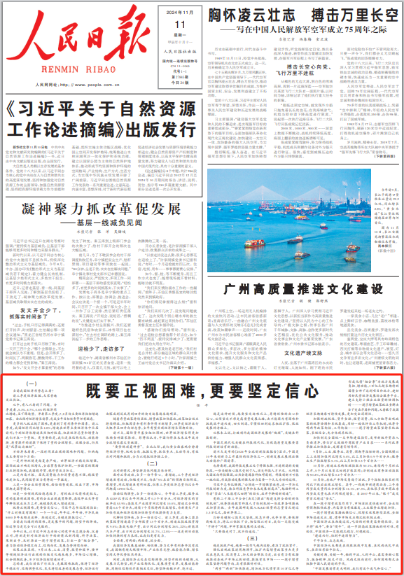 當(dāng)前我們遇到的困難,是發(fā)展中的問題、轉(zhuǎn)型中的陣痛,經(jīng)過努力是完全可以克服的。