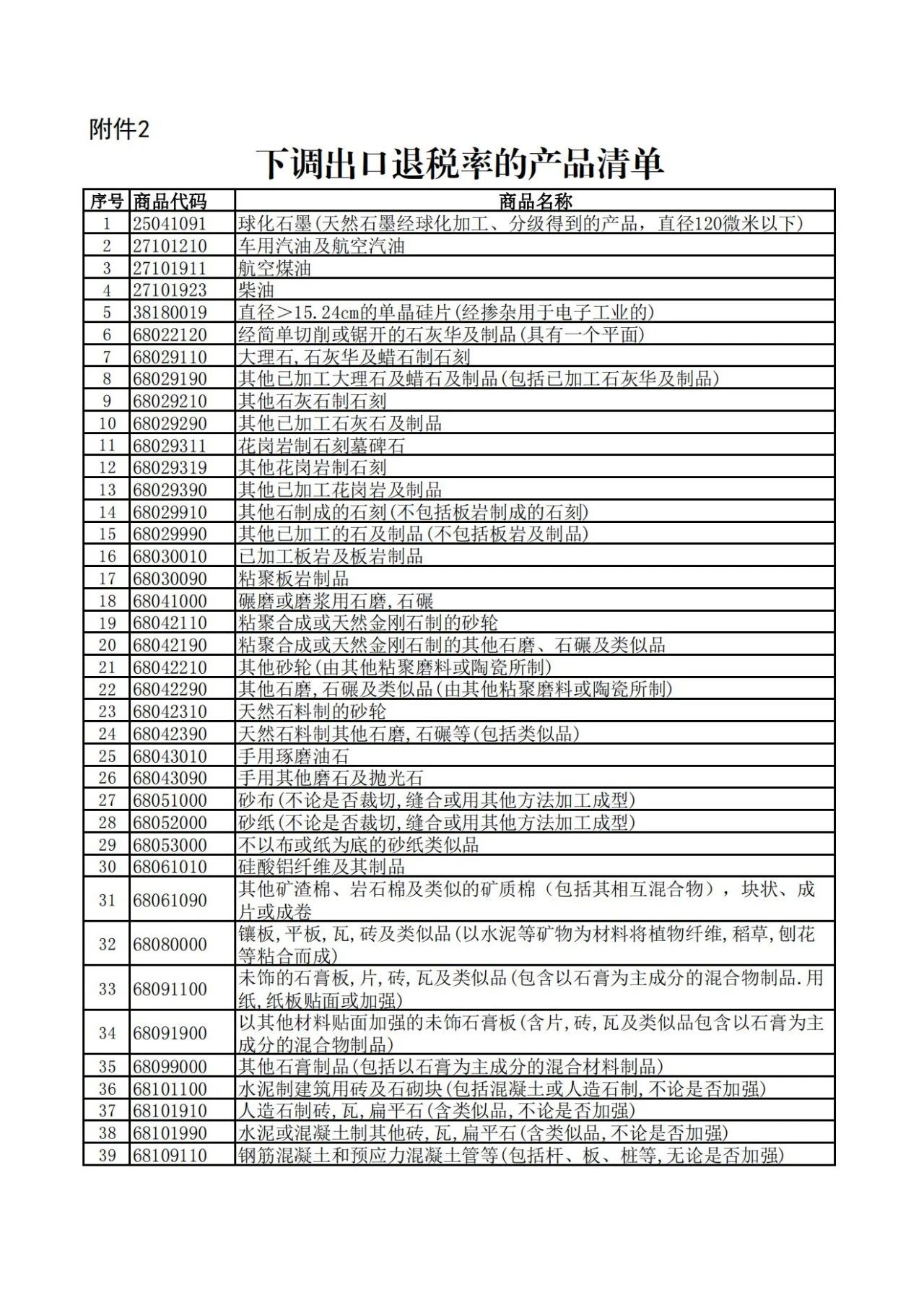 二、將部分成品油、光伏、電池、部分非金屬礦物制品的出口退稅率由13%下調至9%。