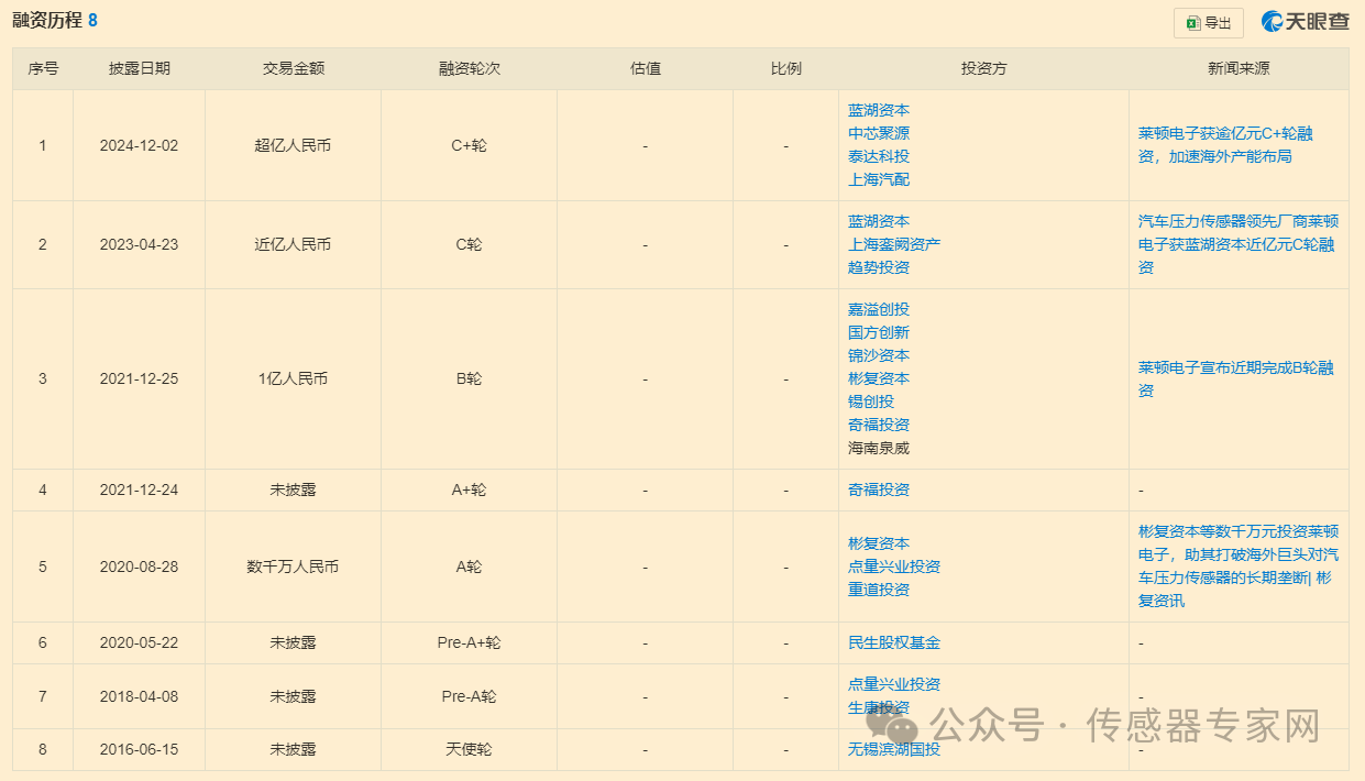萊頓電子成立于2009年9月,是一家汽車壓力傳感器廠商,專注于壓力傳感器的研發(fā)與制造。經(jīng)過十余年的潛心研發(fā)與市場拓展,該公司已成為中國極少數(shù)掌握涵蓋微壓至超高壓全量程范圍的工藝技術(shù)(厚膜、MEMS、薄膜、硅微熔)并可以自主設(shè)計(jì)ASIC芯片的制造商,其產(chǎn)品技術(shù)指標(biāo)處于國際領(lǐng)先水平,生產(chǎn)規(guī)模在國內(nèi)名列前茅。