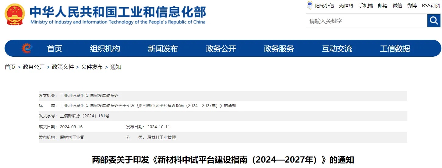 近期國家部委已發(fā)布了多項新材料政策,如工信部發(fā)布的關(guān)于加快布局建設(shè)制造業(yè)中試平臺的通知和國家重點研發(fā)計劃2024年度項目申報指南,政策對具體的新材料領(lǐng)域做了更細節(jié)的規(guī)劃。