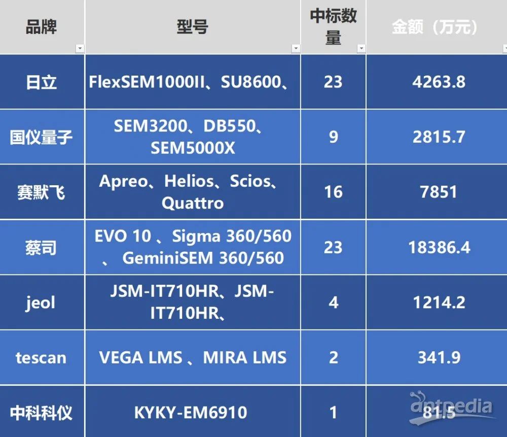 JEOL中標4臺,金額1214.2萬元,占總數量的4.55%,占總金額約4%