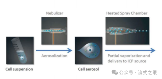 樣品引入:細胞在被引入質譜儀時被霧化成微小的 droplets(液滴),這個過程將含有金屬標簽抗體或其他細胞探針標記的單細胞懸液引入等離子體炬中(圖2-1)。