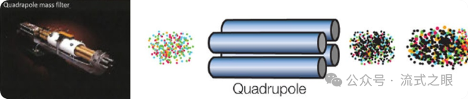 產生的離子云通過真空錐接口進入四極離子偏轉器,采用四極桿按照離子的質荷比(m/z)對離子進行過濾并富集,去除常見的生物元素離子,只富集含有目標金屬報告離子(根據質荷比大小)的部分(圖2-4)。這樣可以提高后續質譜分析的準確性和特異性,只檢測與抗體結合的重金屬標記的蛋白質離子。
