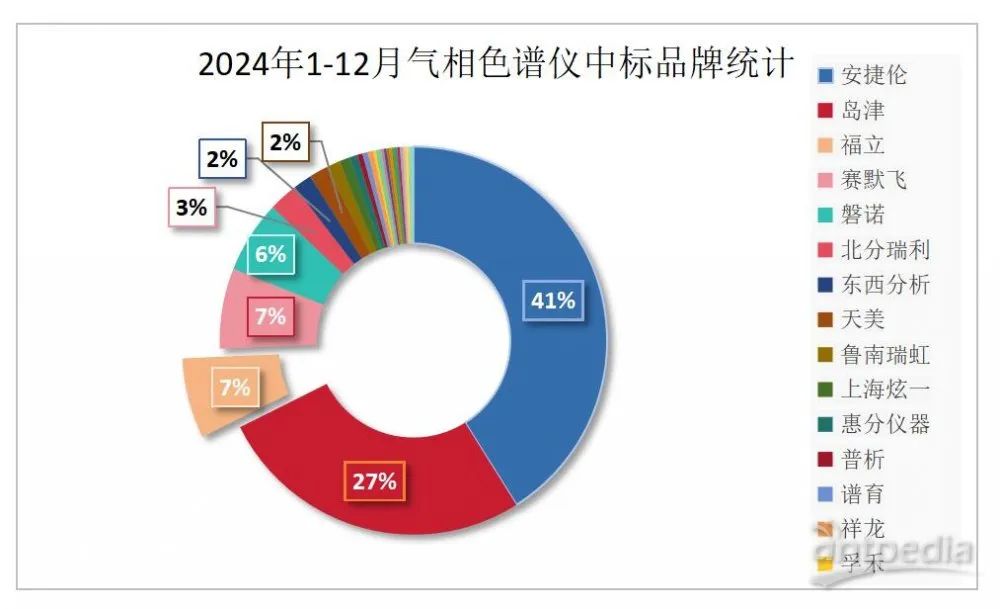 2024年全年的中標數據來看,國產品牌的氣相色譜儀總中標占比已達到25%,即占據了市場的四分之一份額。這一成績不僅展現了國產品牌的強勁發展勢頭,也凸顯了國產氣相色譜儀在市場中日益重要的地位,未來有望進一步突破國際品牌的市場壟斷,實現更大的發展。