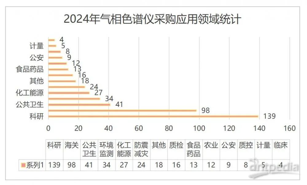 從采購行業來看,氣相色譜儀的應用領域非常廣泛,主要集中在科研、海關、公共衛生(疾控)、環境監測、化工能源、防震減災等行業。