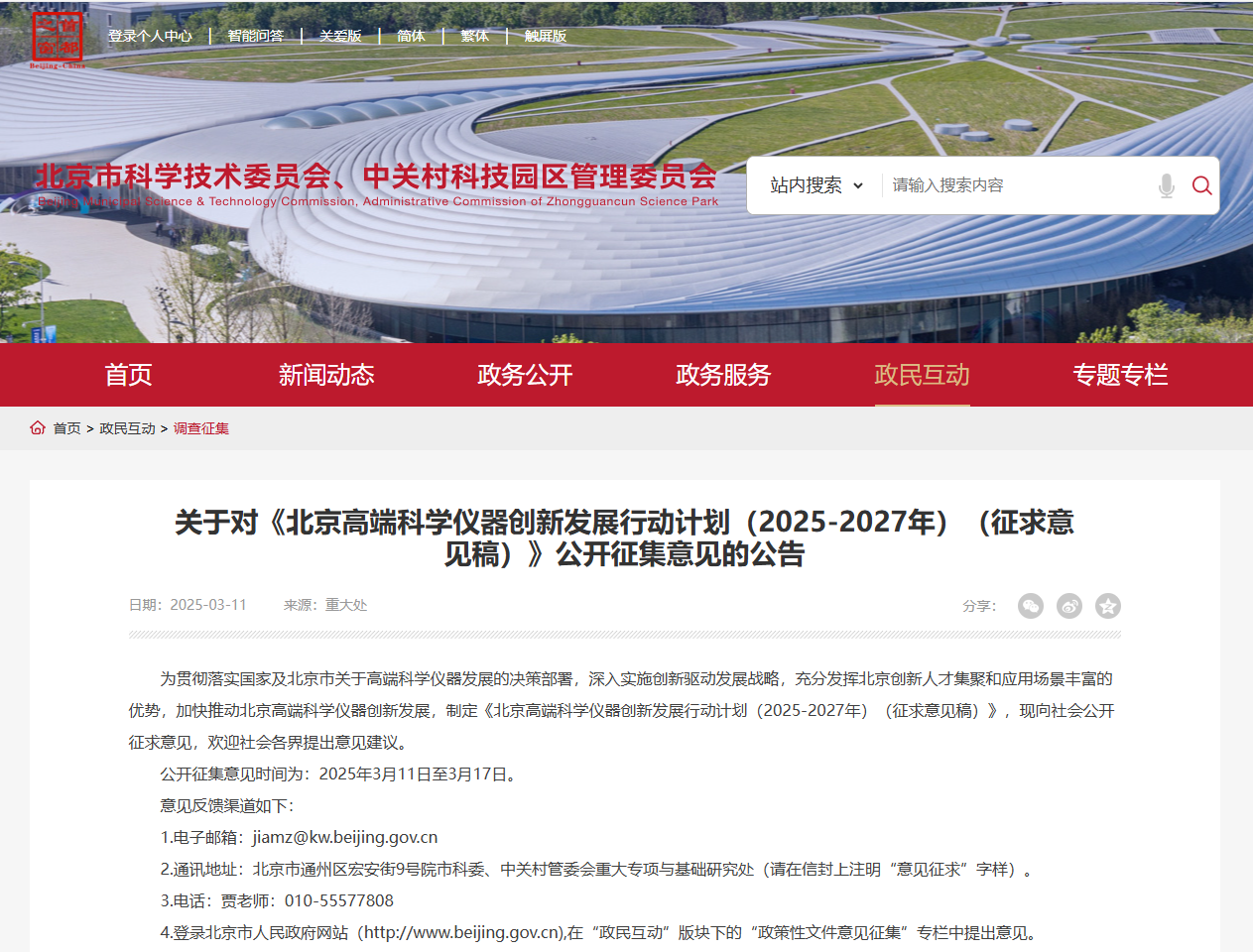 1. 《北京高端科學(xué)儀器創(chuàng)新發(fā)展行動(dòng)計(jì)劃(2025-2027年)(征求意見(jiàn)稿)》