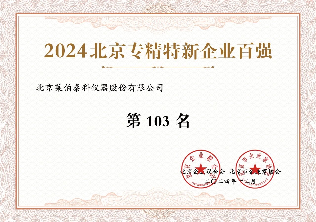 萊伯泰科榮登“2024北京專精特新企業百強”榜單