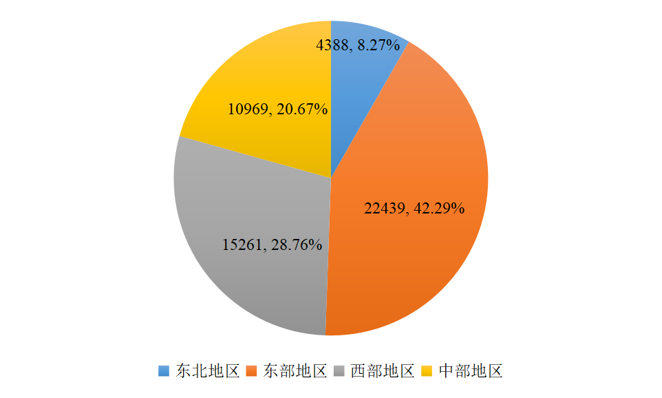 圖4-1 2024年全國檢驗檢測機構(gòu)區(qū)域分布(單位:家)
