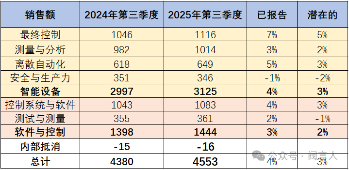 2025年度的第三季度,艾默生集團凈銷售額為45.5億美元(合計人民幣378億元),相比去年同期增長4%,其中和閥門、執行器、控制閥、定位器相關的最終控制板塊為11.2億美元(合計人民幣80億元),相比去年同期增長7%